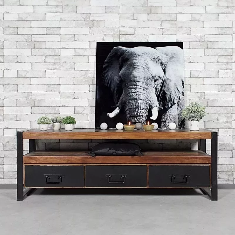 Mesa Tv Industrial Vintage Rack Madera Hierro