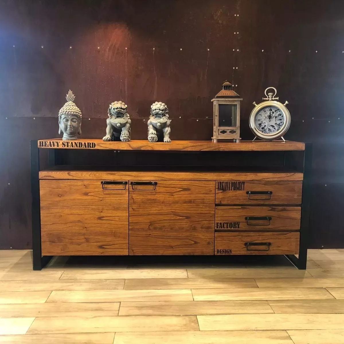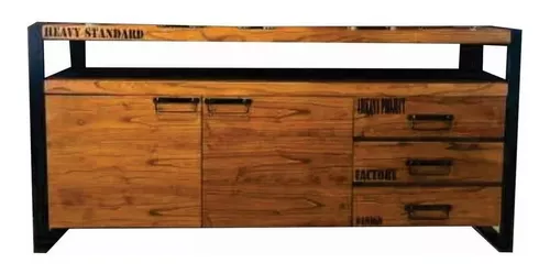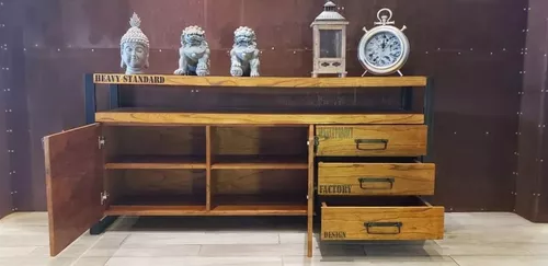 Este mueble de Tv estilo industrial esta hecho de madera y metal industrial reciclado.