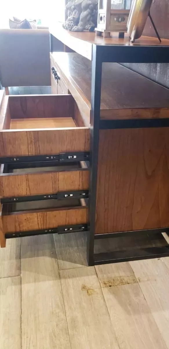 Consta de tres cajones laterales, 2 grandes puertas con gran espacio interior.
