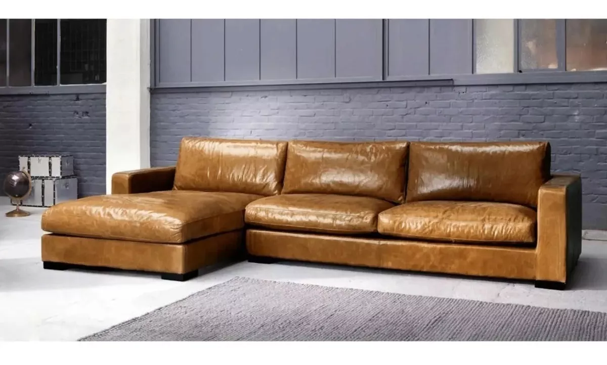 El Gran Sillon Esquinero Modelo «Kennedy» de 5 asientos es Ideal para reunir a familiares y amigos en la sala de estar, te seducirá con sus generosas dimensiones y su línea muy contemporánea. Este sofá de esquina de cuero es perfecto para grandes espacios.