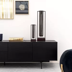Las patas y detalles de metal están pintados con un acabado de color negro siguiendo la tendencia de las estructuras vistas.