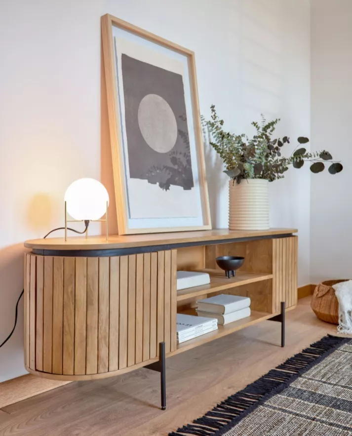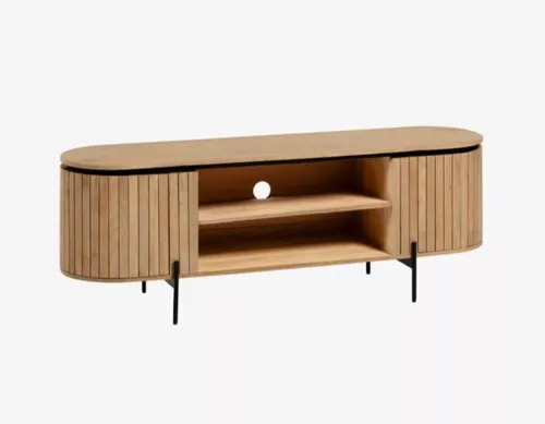 Atemporal y elegante. Mueble TV con gran capacidad mezcla de sus acabados y su diseño la hacen una pieza muy original.